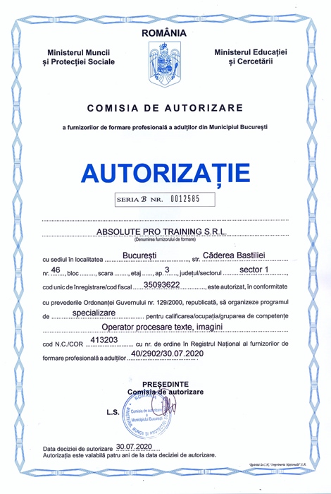 Cursurile si examenele se desfasoara online (videoconferinta, in direct cu trainerul) conf. OUG 97/2020.